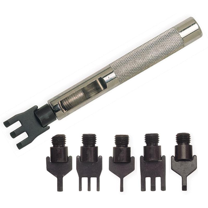 Create clean, consistent slits for lacing and thonging with the Craftool® Thonging Chisel Set. Crafted from tempered steel for durability, this professional set includes one- and three-prong interchangeable tubes for each size to punch 1/16", 3/32", and 1/8" slits, along with an easy-change handle—six tools in one versatile system. For best results and tool longevity, use a Poundo Board or Poly Cutting Board as a punching surface to protect both your tools and your tabletop.